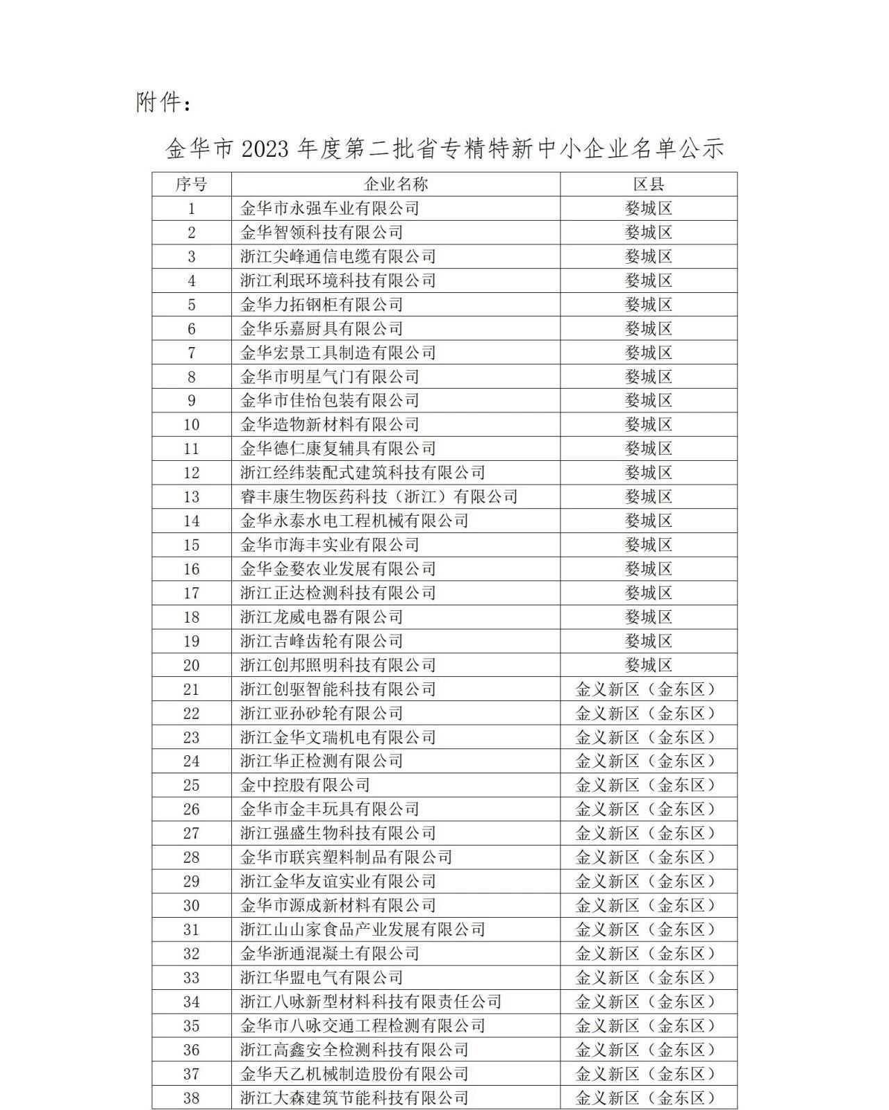 關(guān)于金華市2023年度第二批浙江省專精特...