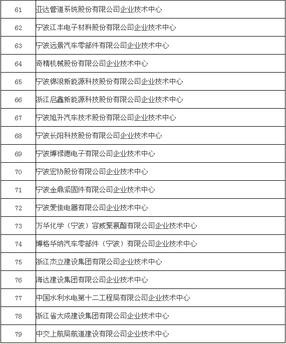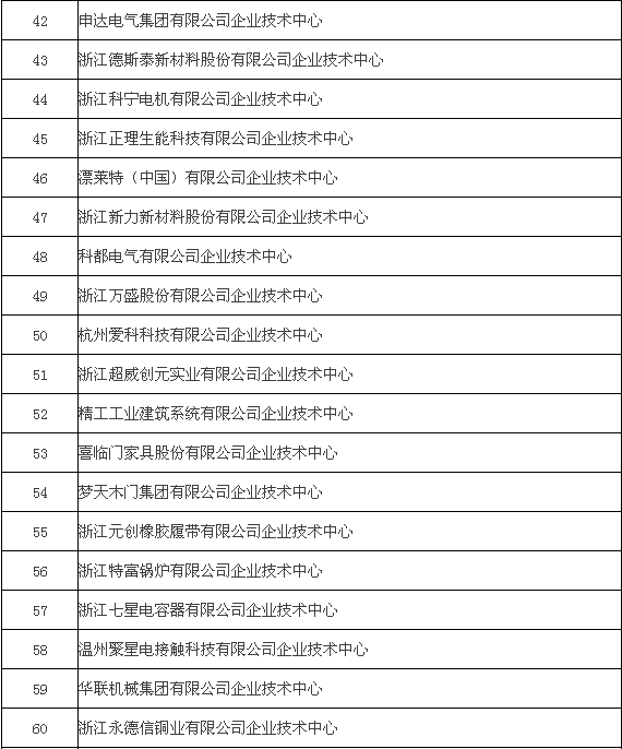 附件:浙江省2017年(第二十四批)擬認定為省級企業(yè)技術(shù)中心名單