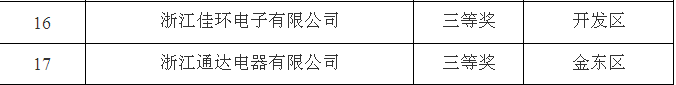 2017年金華市專利實施獎擬獎勵名單