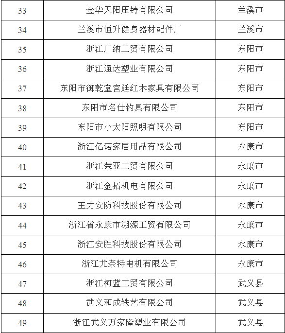 根據(jù)《金華市專利示范企業(yè)認定與管理辦法》(金政發(fā)〔2004〕132號,金政發(fā)〔2008〕70號修改)文件精神,在各縣(市、區(qū))科技管理部門推薦的基礎(chǔ)上,經(jīng)材料審查、專家評審,擬認定金華市希能折疊桌制造有限公司等60家企業(yè)為2017年金華市專利示范企業(yè),現(xiàn)予公示,接受社會監(jiān)督,公示期從2017年11月16日至22日止。如有異議,請來人來電反映。