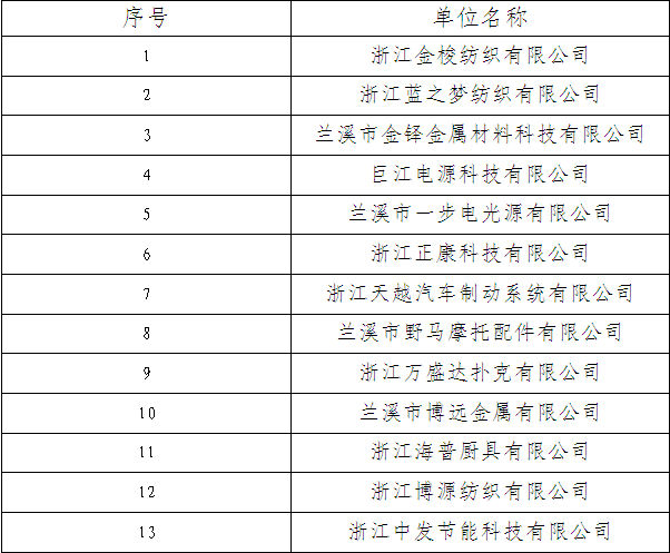 根據(jù)《關(guān)于印發(fā)<蘭溪市專(zhuān)利示范企業(yè)認(rèn)定與管理辦法>的通知》(蘭科局[2008]9號(hào))文件,經(jīng)對(duì)申報(bào)的企業(yè)進(jìn)行材料審查核實(shí)評(píng)審,現(xiàn)將擬認(rèn)定的13家2017年市級(jí)專(zhuān)利示范企業(yè)名單予以公示,接受社會(huì)監(jiān)督,公示期7天,如有異議,請(qǐng)于即日起至2018年1月8日來(lái)人或來(lái)電反映。