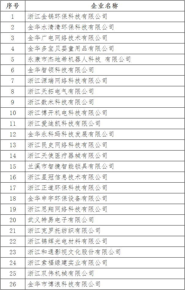 根據(jù)《浙江省人民政府關(guān)于下放部分省級行政審批和管理事項(xiàng)的通知》(浙政發(fā)〔2012〕73號)精神,按照《浙江省科學(xué)技術(shù)廳關(guān)于印發(fā)浙江省科技型中小企業(yè)認(rèn)定管理辦法的通知》(浙科發(fā)高〔2016〕88號)的有關(guān)文件規(guī)定,在各縣(市、區(qū))科技主管部門審核推薦基礎(chǔ)上,經(jīng)市科技局核對,擬同意認(rèn)定浙江金鍋環(huán)保科技有限公司等121家企業(yè)為2018年金華市第一批浙江省科技型中小企業(yè),現(xiàn)予以公示,接受社會(huì)監(jiān)督。