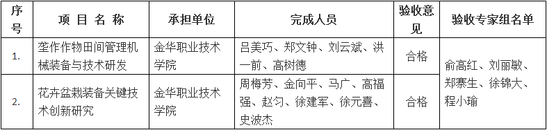 金華市級(jí)科技計(jì)劃項(xiàng)目驗(yàn)收結(jié)果公示清單