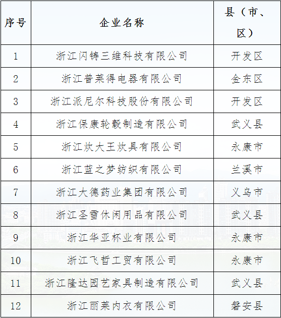 現(xiàn)將金華市第四批“三名培育試點企業(yè)名單(見附件)予以公示,征求社會各界意見。
