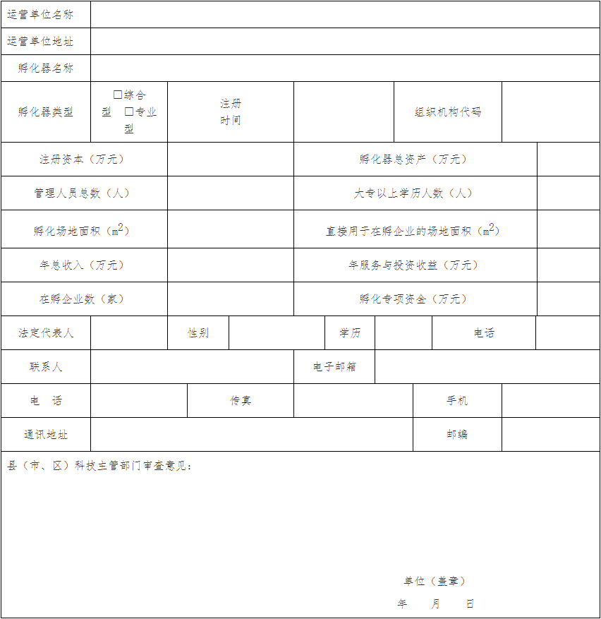 金華市級科技孵化器認(rèn)定申請表