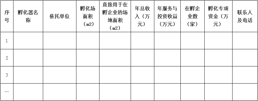 (一)各地科技主管部門要按照“省級以上高新區(qū)國家級科技企業(yè)孵化器(備案眾創(chuàng)空間)全覆蓋、各市、縣(市、區(qū))市級、省級科技企業(yè)孵化器(備案眾創(chuàng)空間)全覆蓋”的要求,加強科技孵化器的培育建設(shè),認(rèn)真做好審核把關(guān)和推薦工作。