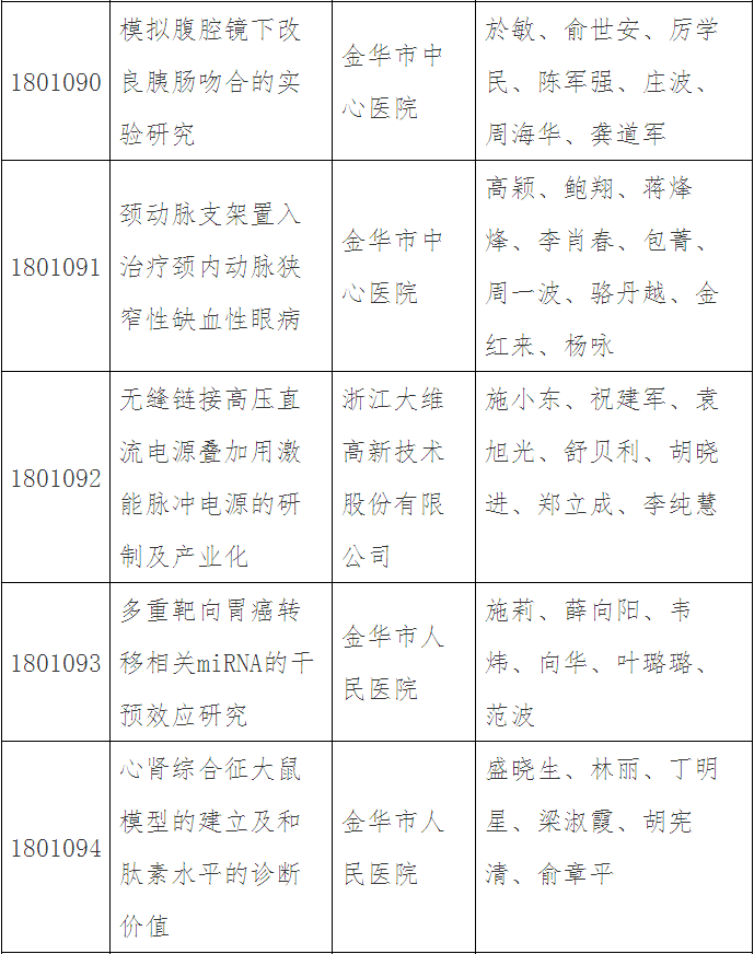 第三十五批金華市科技成果登記名單