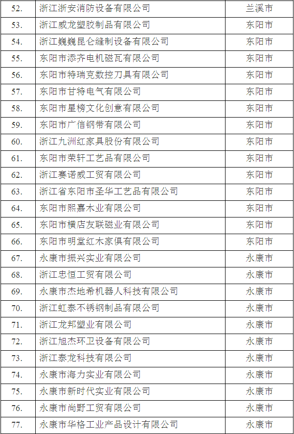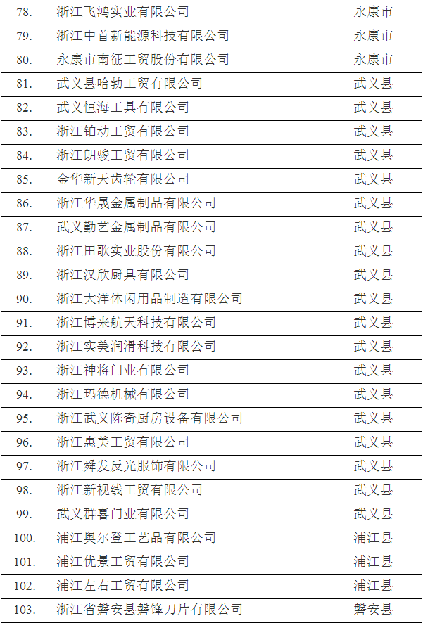 根據(jù)《金華市人民政府關(guān)于印發(fā)金華市高新技術(shù)企業(yè)認(rèn)定與管理辦法》(金政發(fā)〔2009〕92號(hào))規(guī)定的條件和程序,報(bào)經(jīng)市人民政府批準(zhǔn),認(rèn)定“浙江中實(shí)檢測(cè)技術(shù)有限公司”等103家企業(yè)為2018年第二批金華市高新技術(shù)企業(yè)。