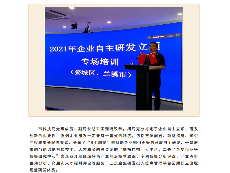 首頁 >新聞中心2021年企業(yè)自主研發(fā)立項專場培訓(xùn)(婺城區(qū)、蘭溪市專場)順利召開