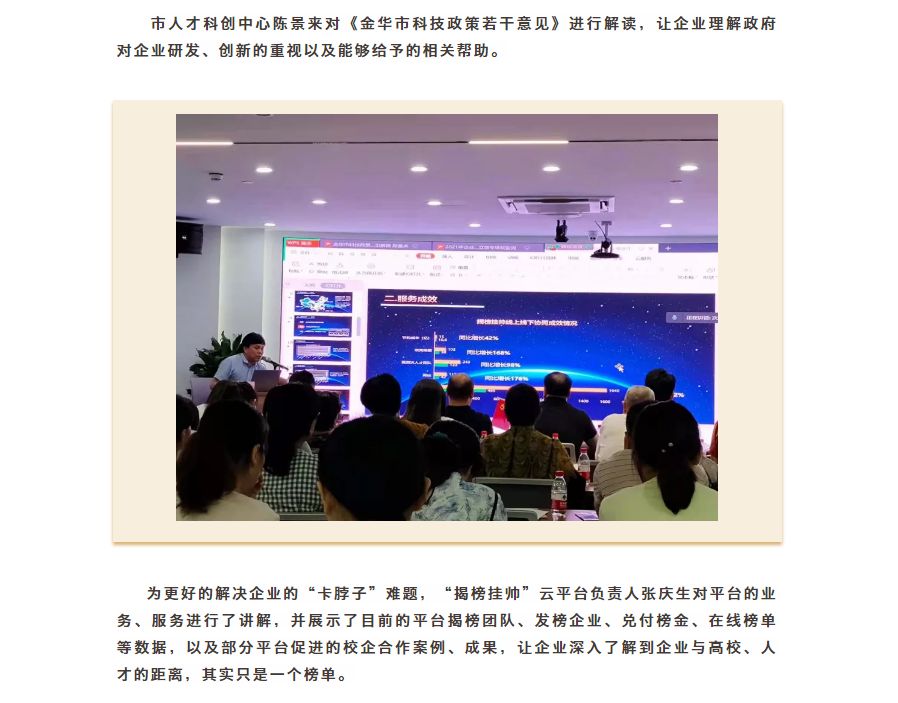 為進(jìn)一步加強(qiáng)企業(yè)研發(fā)項目登記管理,幫助企業(yè)掌握自主研發(fā)立項的思路、方法和系統(tǒng)操作,引導(dǎo)創(chuàng)新主體加大R&D研發(fā)投入,解讀企業(yè)研發(fā)經(jīng)費(fèi)加計扣除等科技政策。6月21日,在市科技局的指導(dǎo)下,市人才科創(chuàng)中心聯(lián)合婺城區(qū)和蘭溪市,組織2021年企業(yè)自主研發(fā)立項線上線下專場培訓(xùn)會在浙中科技大市場暨“揭榜掛帥”服務(wù)中心順利召開。此次參加線上、線下培訓(xùn)人員共計160人左右。浙中科技大市場和金華市高新技術(shù)企業(yè)協(xié)會具體承辦。