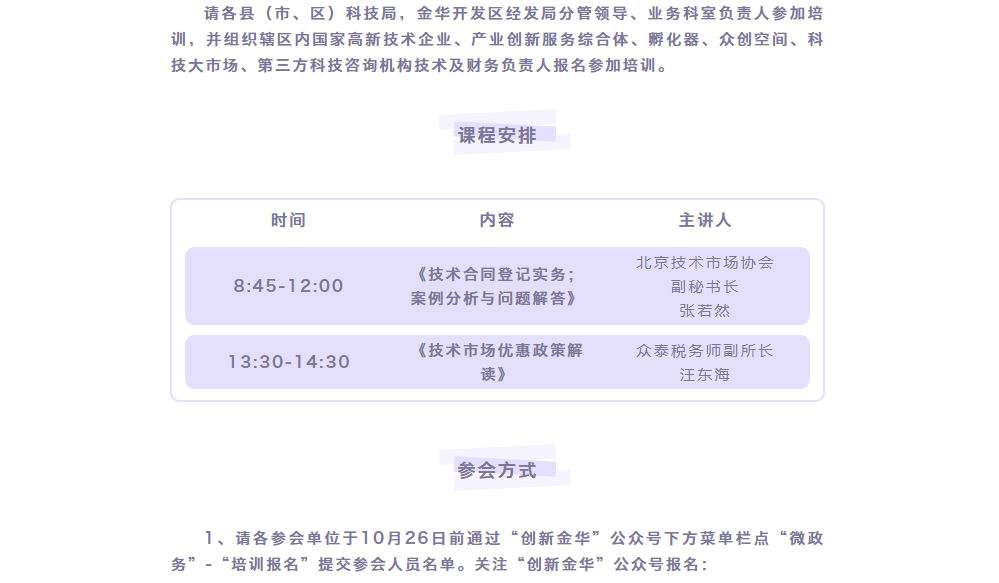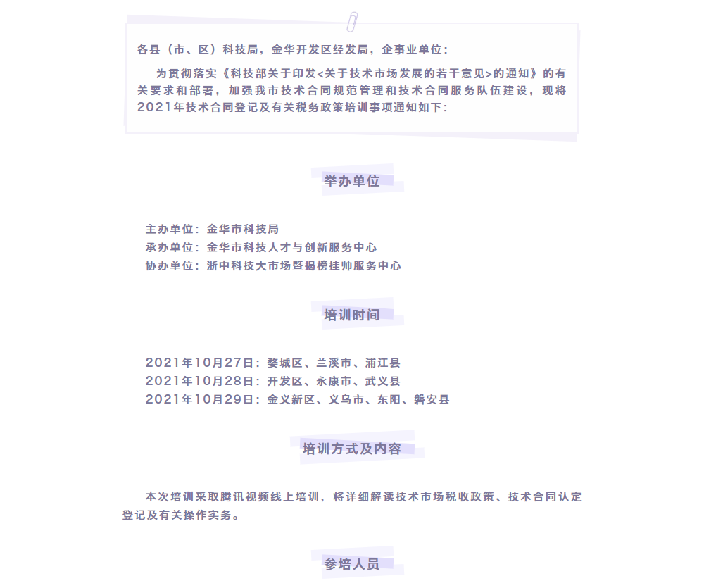 金華市科學(xué)技術(shù)局 關(guān)于召開技術(shù)合同及相關(guān)稅務(wù)政策培訓(xùn)的通知